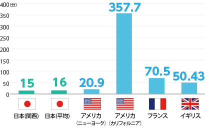 1日でいえば、昼間14~15時頃が最も多く、深夜から早朝にかけてが最も少なくなっており、その差は約2倍あります。