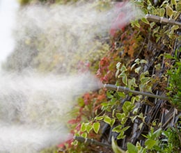 街には気化熱を使った、すずしい工夫がいっぱいあります。夏に大通りなどで見かけるミストは、肌にかかると冷たく感じます。あの水は、冷やした水ではありません。25度くらいのふつうの水です。でも、今回の実験のように肌やまわりの空気から熱をうばうので、すずしく感じるのです。