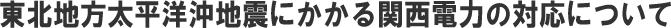 このたびの東北地方太平洋沖地震にかかる東京電力原子力発電所で発生した事態につきまして、当社は、福井県西川知事ならびに地元の皆さまからのご要請を受け、11基の原子力発電所の原子炉を「止める」「冷やす」、放射性物質を「閉じ込める」ための安全上重要な機器の健全性について確認を行っています。