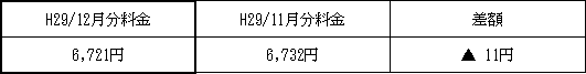 - (3)従量電灯Aの平均的なモデルの影響額(H29/11月分電気料金との比較)
