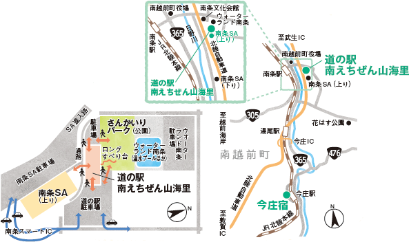 北陸自動車道から道の駅 南えちぜん山海里にお越しの際は、南条SA駐車場の混雑を避け、