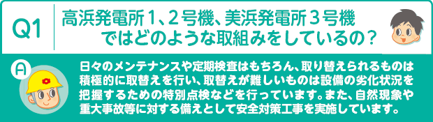 高浜発電所1、2号機、美浜発電所3号機は、60年までの運転期間延長について、原子力規制委員会から認可をいただき、現在、皆さまのご理解を賜る活動に取り組むとともに、当社の責任と判断において安全対策工事を進めています。