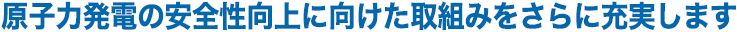 東日本大震災以降、東京電力福島第一原子力発電所事故を踏まえた反省に基づき、規制の枠組みにとどまらない安全性向上の取組み等について、全社を挙げて推進しているところです。