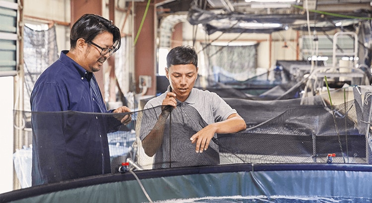 水温を一定に保てる陸上養殖施設で成果が出ても、実際に海で育つのか。鮎川さんと鍬先はプロジェクトの意義や将来像を丁寧に説明することで新しい魚種育成に慎重な姿勢を示していた養殖事業者を動かした。24年夏から高浜町の海で高水温耐性マサバの育成検証を実施し、手ごたえを得ている。
