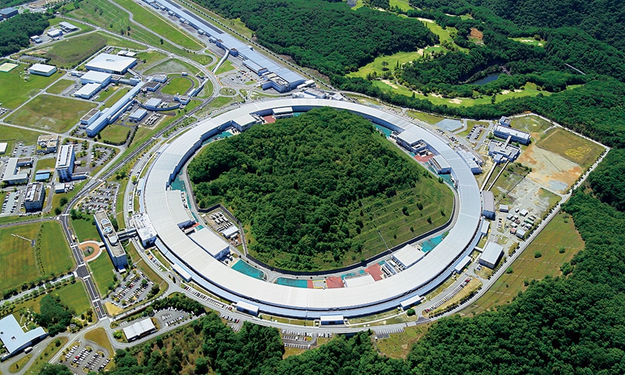 原子・分子レベルで物質の構造や機能を解明するナノサイエンス。その研究を支えているのが兵庫県佐用町の播磨科学公園都市にある大型放射光施設「SPring-8」だ。光速近くまで加速した電子の進行方向を曲げ、発生した放射光で、ナノ(10億分の1)の世界を可視化することができる。SPring-8は、世界最高峰の高輝度放射光が利用できる施設として1997年に稼働した。