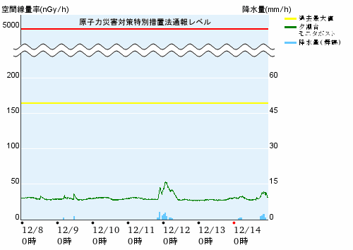 たとえば、雨が降ると大気中に含まれる天然の放射性物質が雨滴とともに地表に降下するために上昇します。また、雪が積もると大地からの放射線が遮られるために低下します。