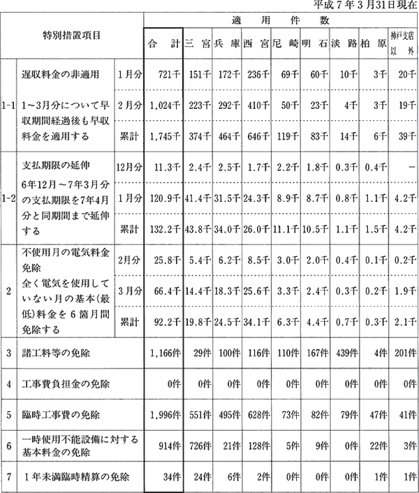 表4-3-11 神戸支店以外の災害特別措置の項目別適用件数