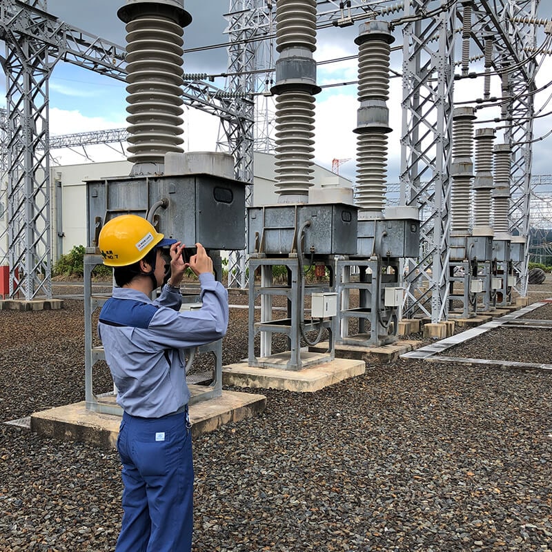 私が勤務する部署では、発電所でつくられた非常に高い電圧の電気を、お客さまに供給する適切な電圧へ変換する変電所の保守管理を行っています。